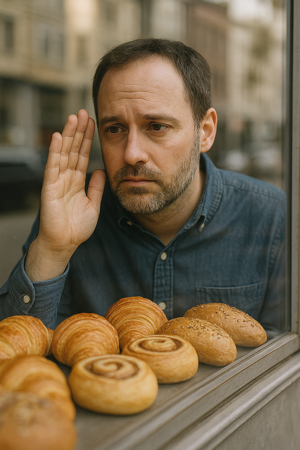 "Ya no más el pan tostado crujiente en el desayuno. Olvídate de la pizza compartida con amigos los viernes. Adiós a los croissants del domingo en familia. Y ni hablar de los cumpleaños donde todos disfrutan la torta mientras tú... solo miras."